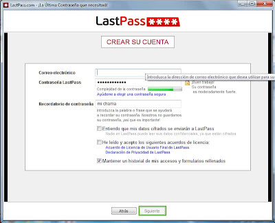 Creamos una cuenta en el sitio, el programa garantiza la debida encriptación de la información proporcionada por el usuario y al generada por el programa mismo, además de que las contraseñas no se almacenan en los servidores, sólo en nuestro equipo:
